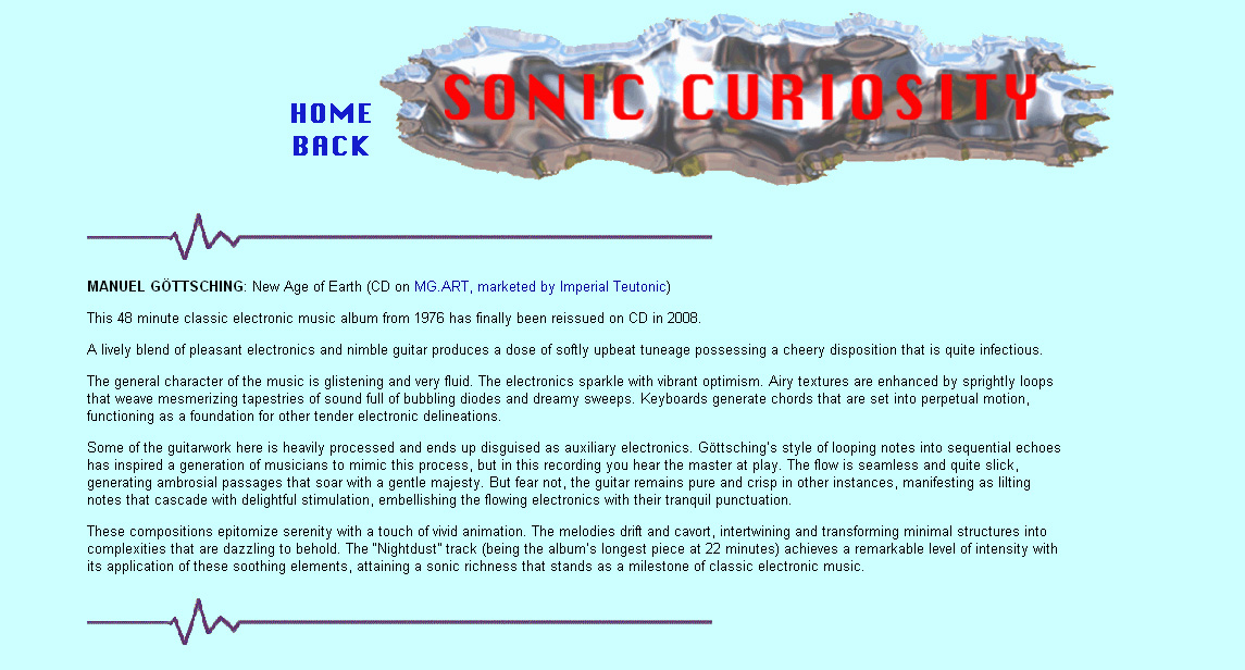 [...] It is no doubt that New Age of Earth is Manuel Göttsching and Ashra's finest album. [...]